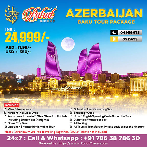 RAHAT GROUP regularly conducts exclusive tour packages to Azerbaijan, one of the most popular travel destinations today. With its captivating blend of modernity and tradition, Azerbaijan has become a favorite among travelers. We also offer a unique Umrah plus Azerbaijan package, combining your spiritual journey with an enriching cultural experience in this beautiful country. Travel with RAHAT GROUP for a seamless and memorable trip to Azerbaijan, crafted with the same care and quality as our renowned Umrah services.