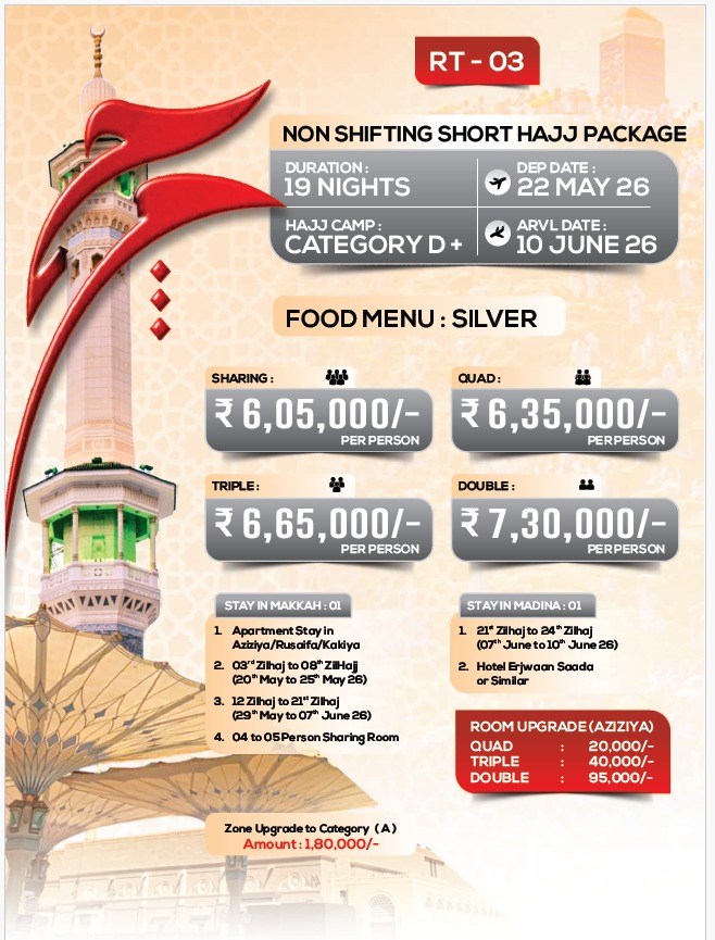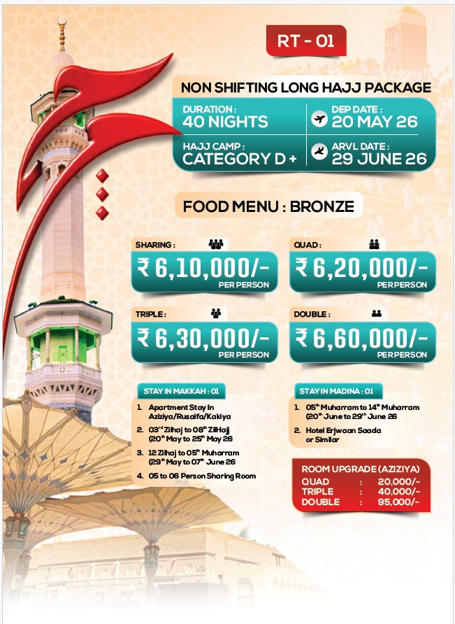 - Any increase in above will be borne and paid by the Haji Before Departure.