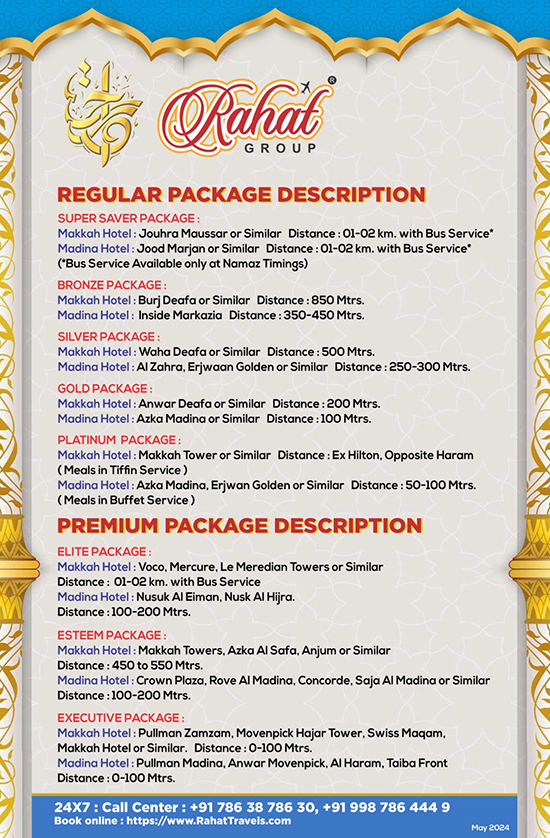 3. Please take Printout (HARD COPY) of your Ticket, Visa, Insurance, Hotel Voucher, Umrah Visa before reaching the AIRPORT. Printouts will not be arranged on airport by our Staff.
