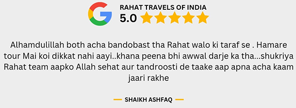 we are very happy with the way the whole trip went. It was easy, comfortable and we will not hesitate to use Rahat Travels Of India for our next trips Insha Allah.