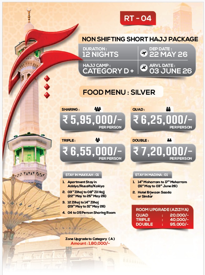 - Any increase in above will be borne and paid by the Haji Before Departure.