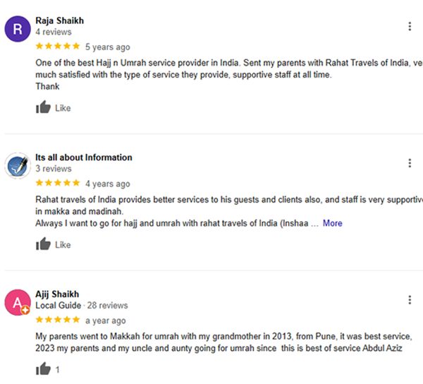 : Google Review from Pilgrims who joined Rahat Group Recently :