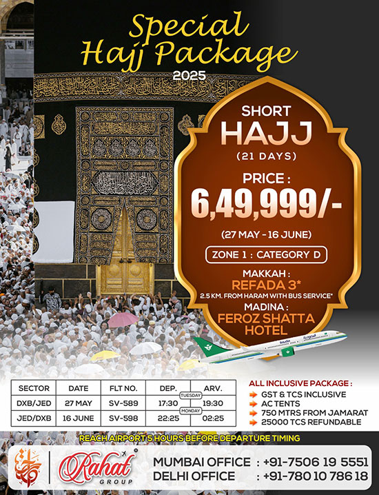 "Rahat Travels Of India" and lay hands on budget soothing and all-inclusive hajj packages.