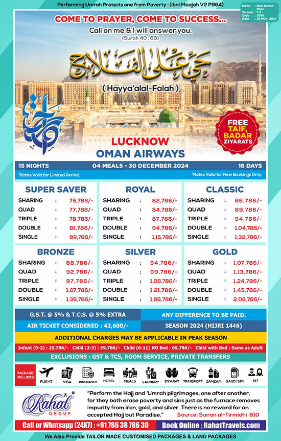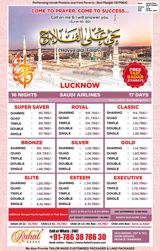 - Services, Itinerary, and prices are subject to Saudi and Indian Government regulations.